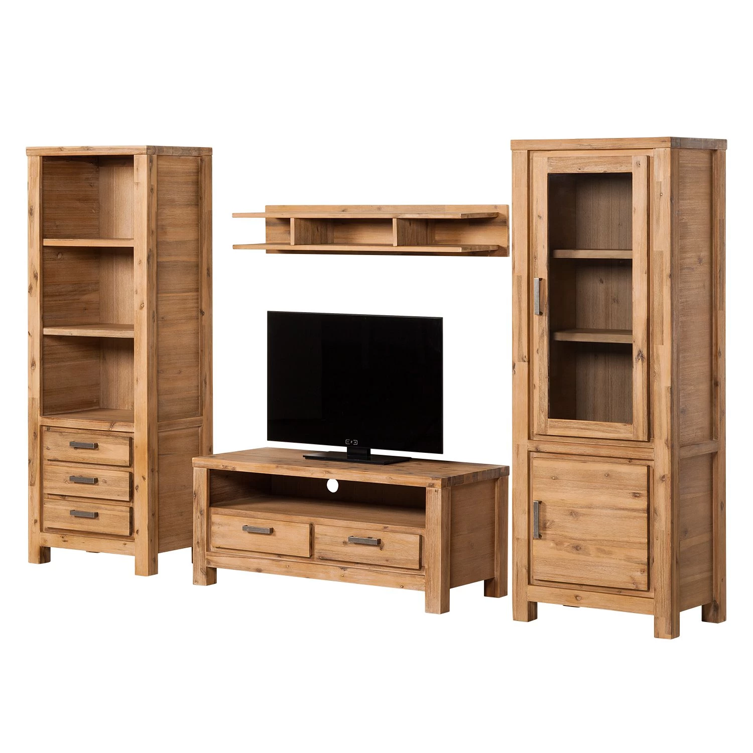- Meuble TV : 1 compartiment pour appareils électroniques avec passe-câbles et 2 tiroirs