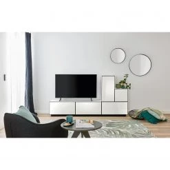 - Contenu de la livraison : Ensemble meubles TV comprenant 1 meuble TV et 2 meubles hauts avec éclairage inclus, sans accessoires