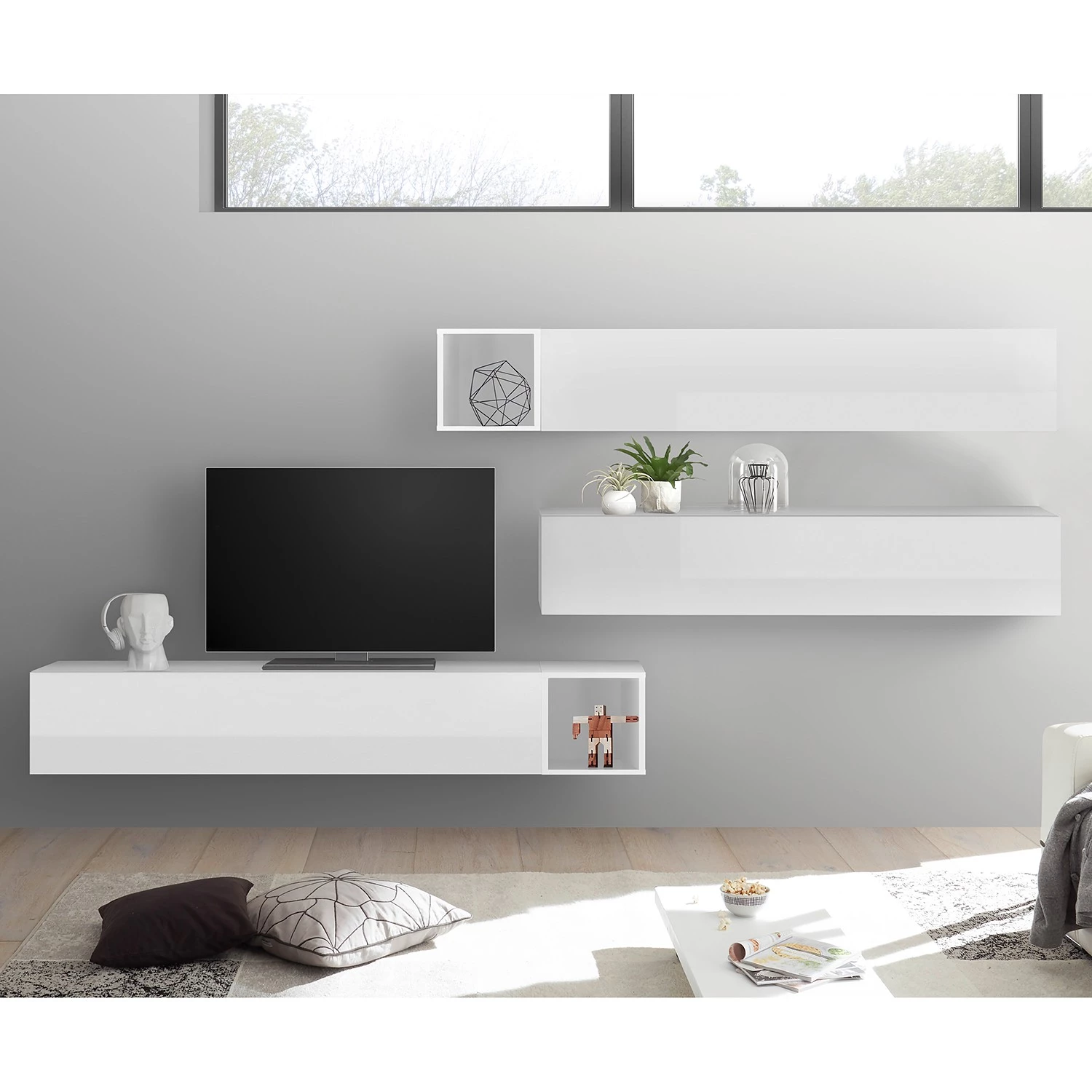 - Contenu de la livraison : Ensemble comprenant 3 éléments muraux avec abattants et 2 étagères murales