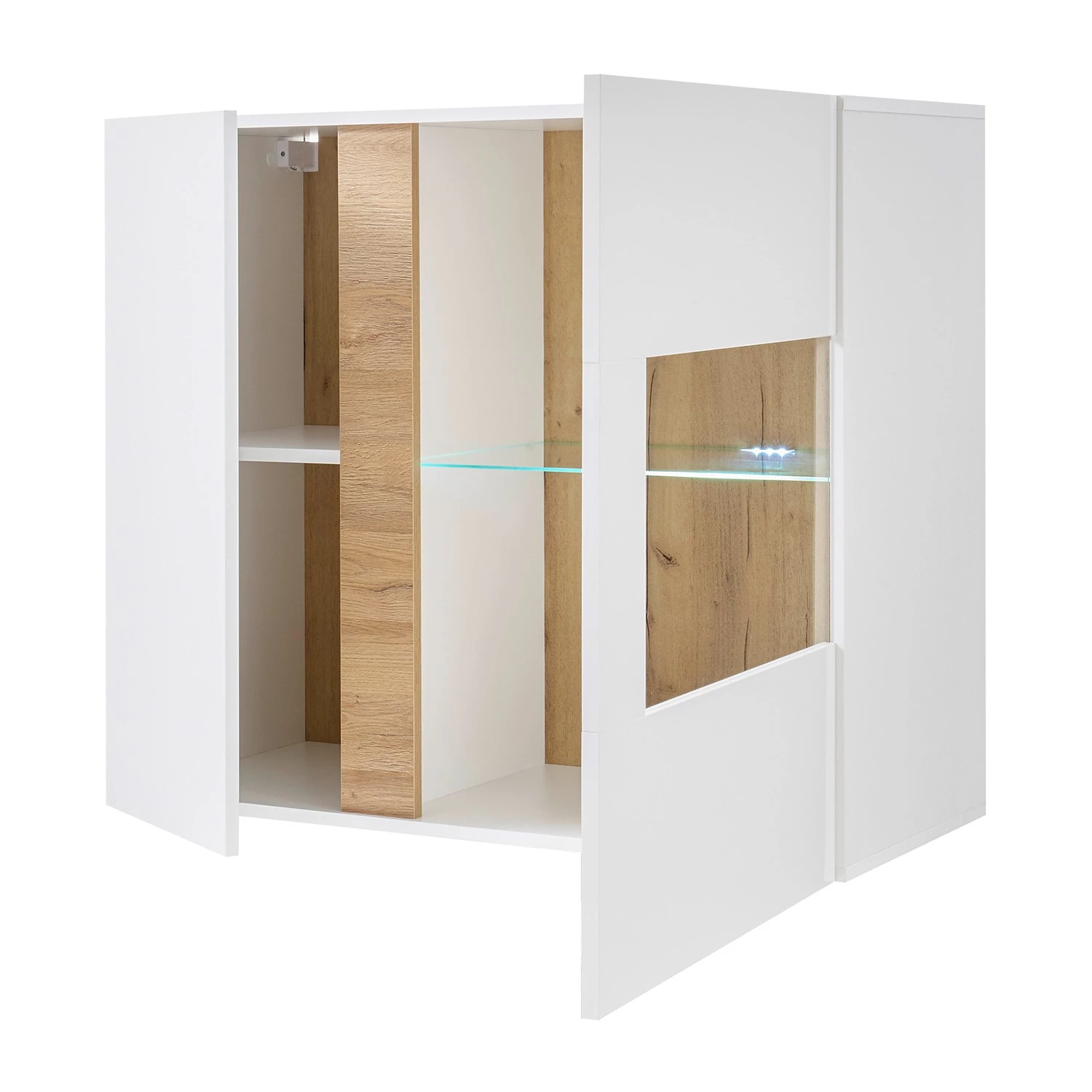 - Contenu de la livraison : Ensemble comprenant 1 vitrine, 1 tablette murale, 1 meuble TV et 1 vitrine murale t, sans éclairage ni accessoires