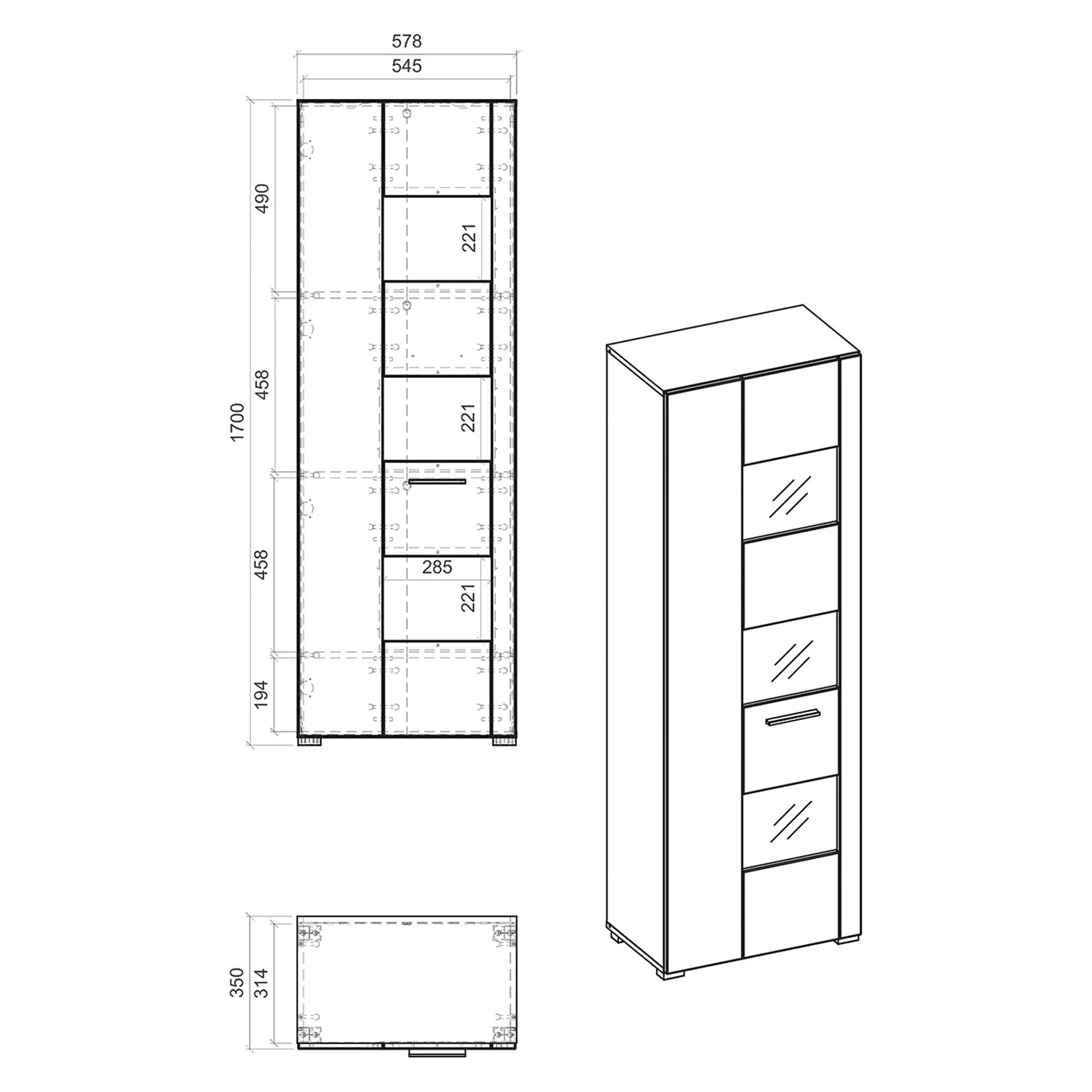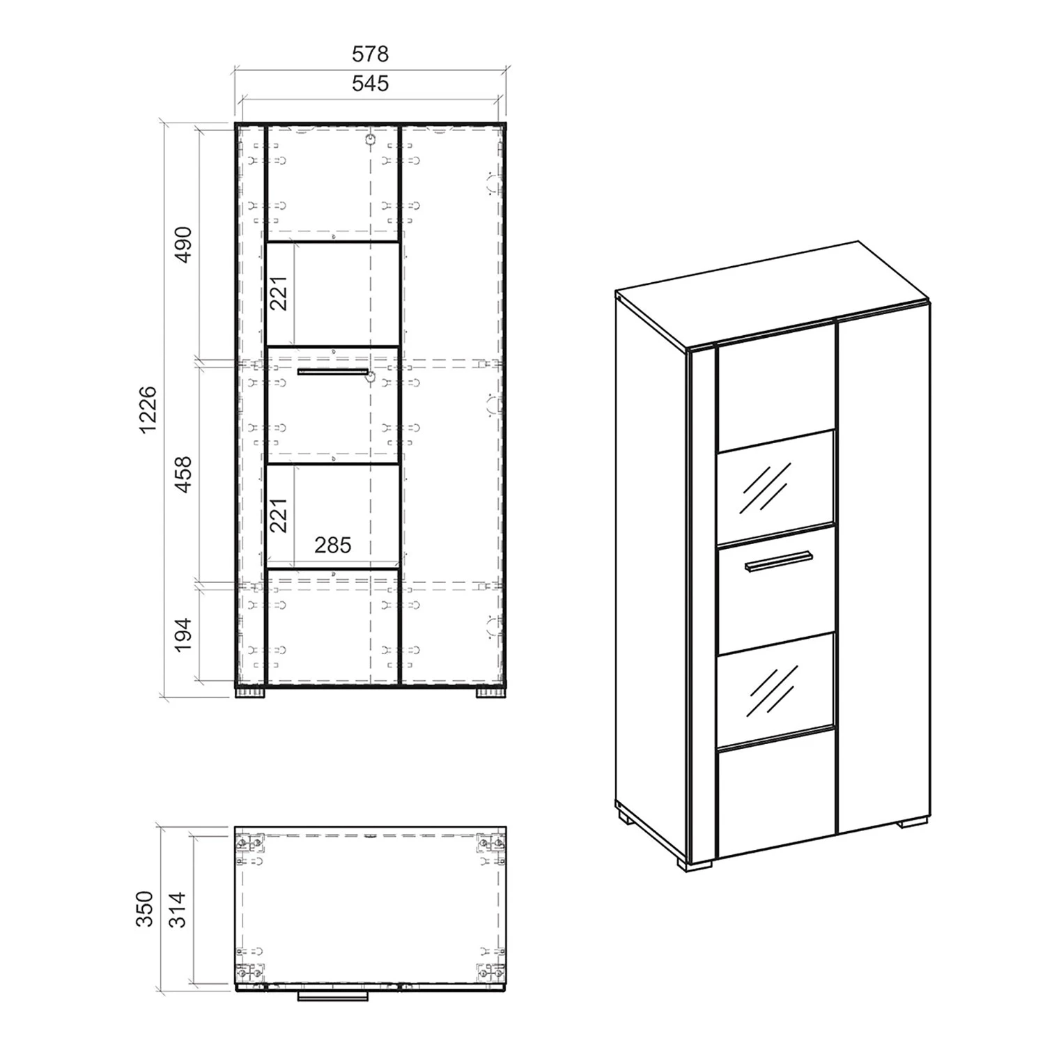 - Nombre de portes en verre : 1