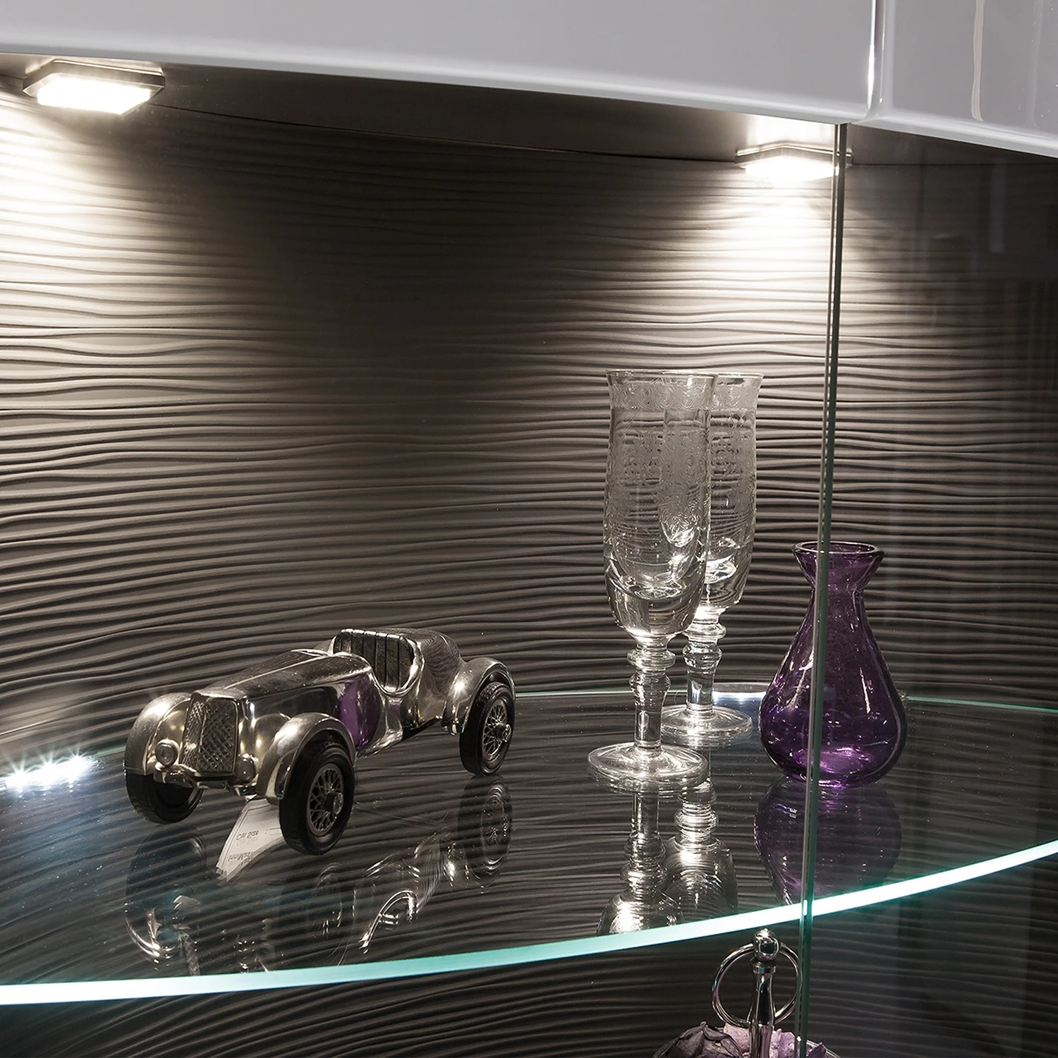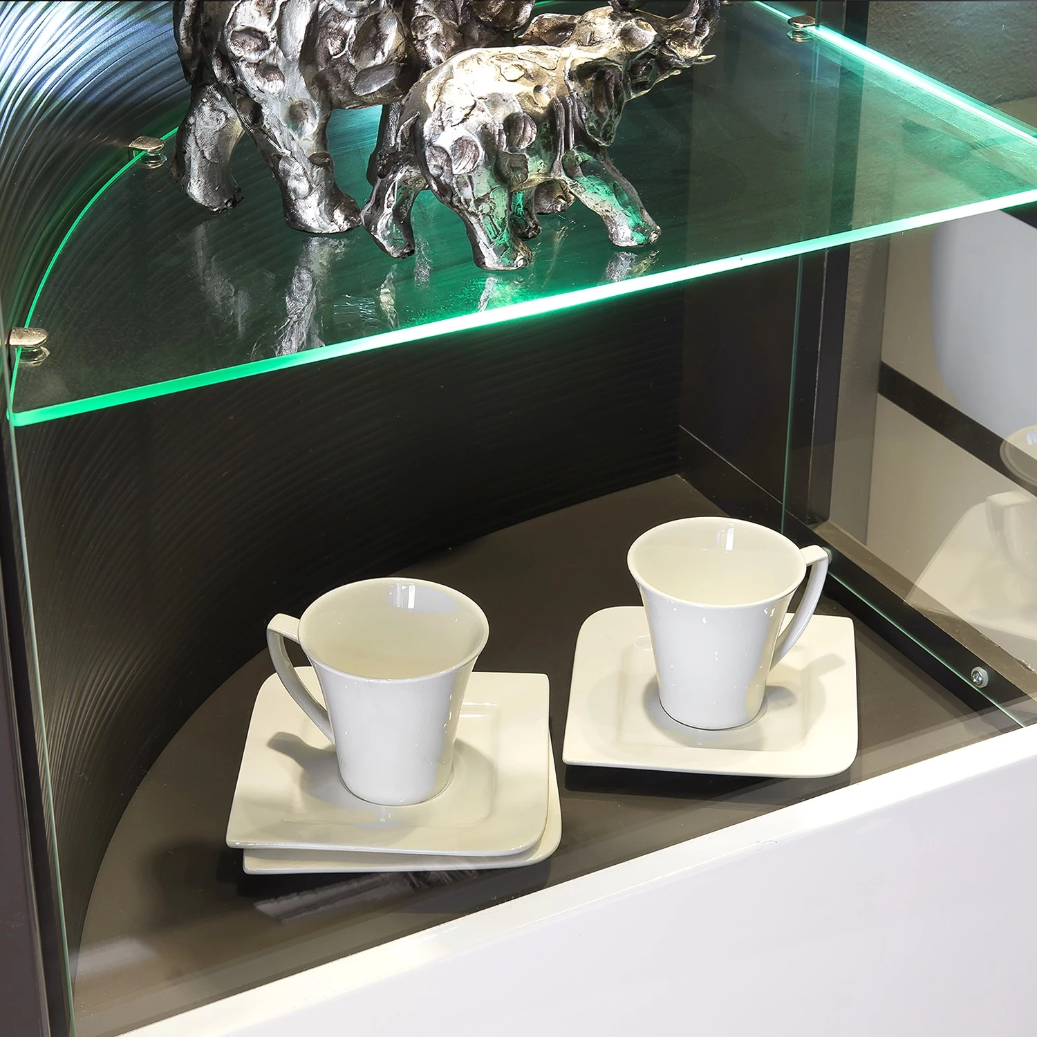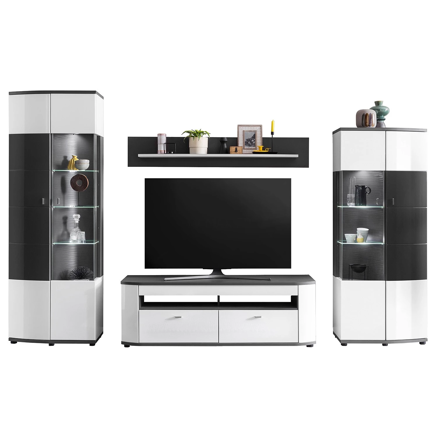 - Contenu de la livraison : Ensemble comprenant 1 meuble TV, 2 vitrines et 1 tablette murale, sans éclairage ni accessoires