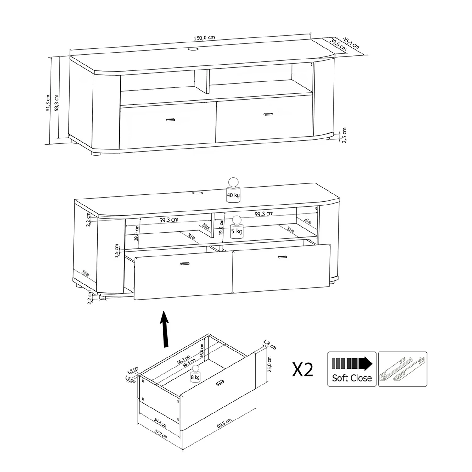 - Contenu de la livraison : Ensemble comprenant 1 meuble TV, 2 vitrines et 1 tablette murale