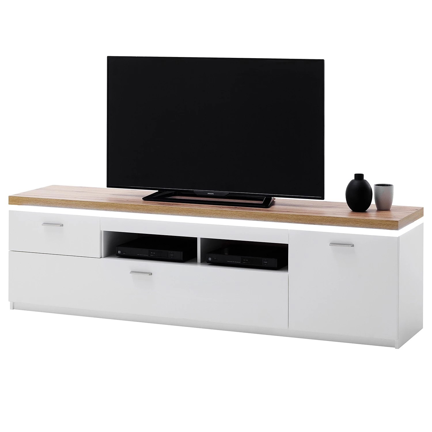 - Contenu de la livraison : 1 vitrine, 1 meuble TV et 1 tablette murale avec éclairage, sans accessoires