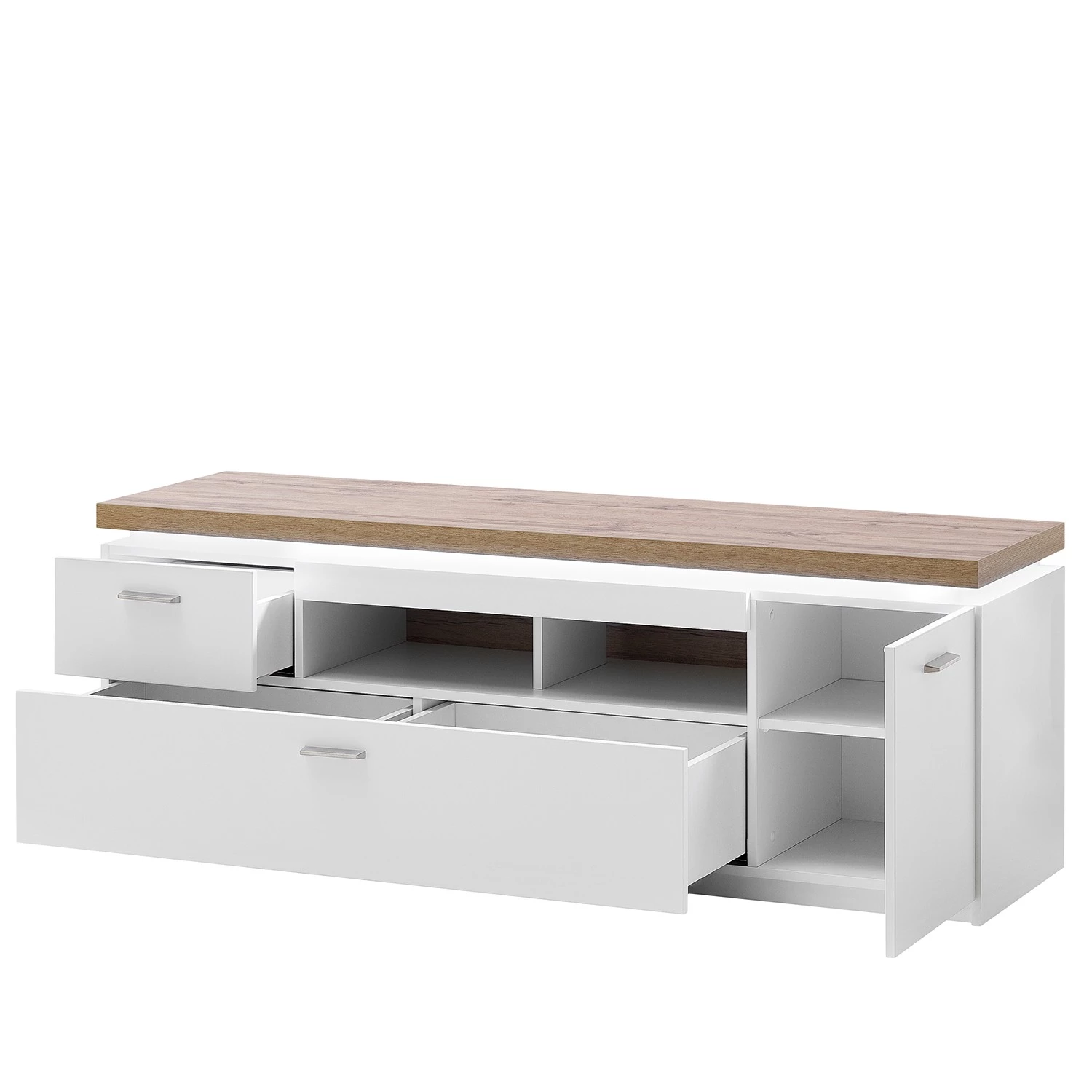 - Contenu de la livraison : 1 buffet haut, 1 meuble TV et 1 étagère murale avec éclairage, sans accessoires