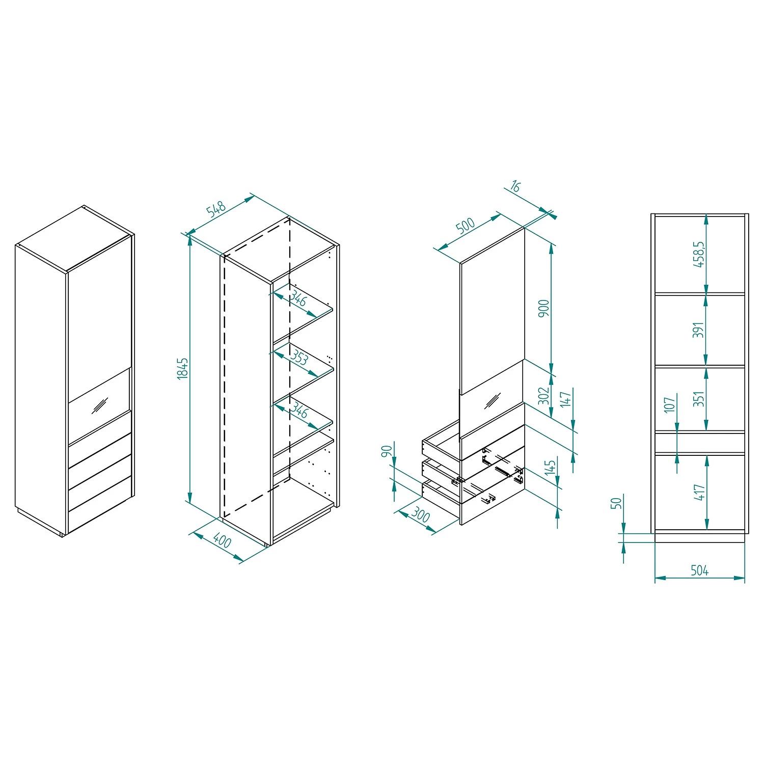- Dimensions intérieures du tiroir : 51 x 15 x 30 cm / 50 x 15 x 35 cm