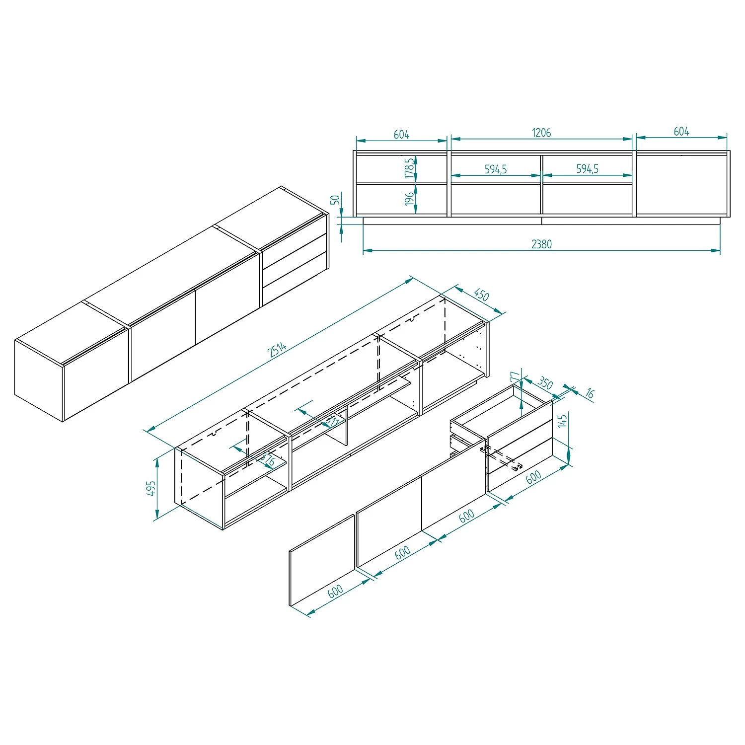 - Meuble TV : 210 x 50 x 45 cm