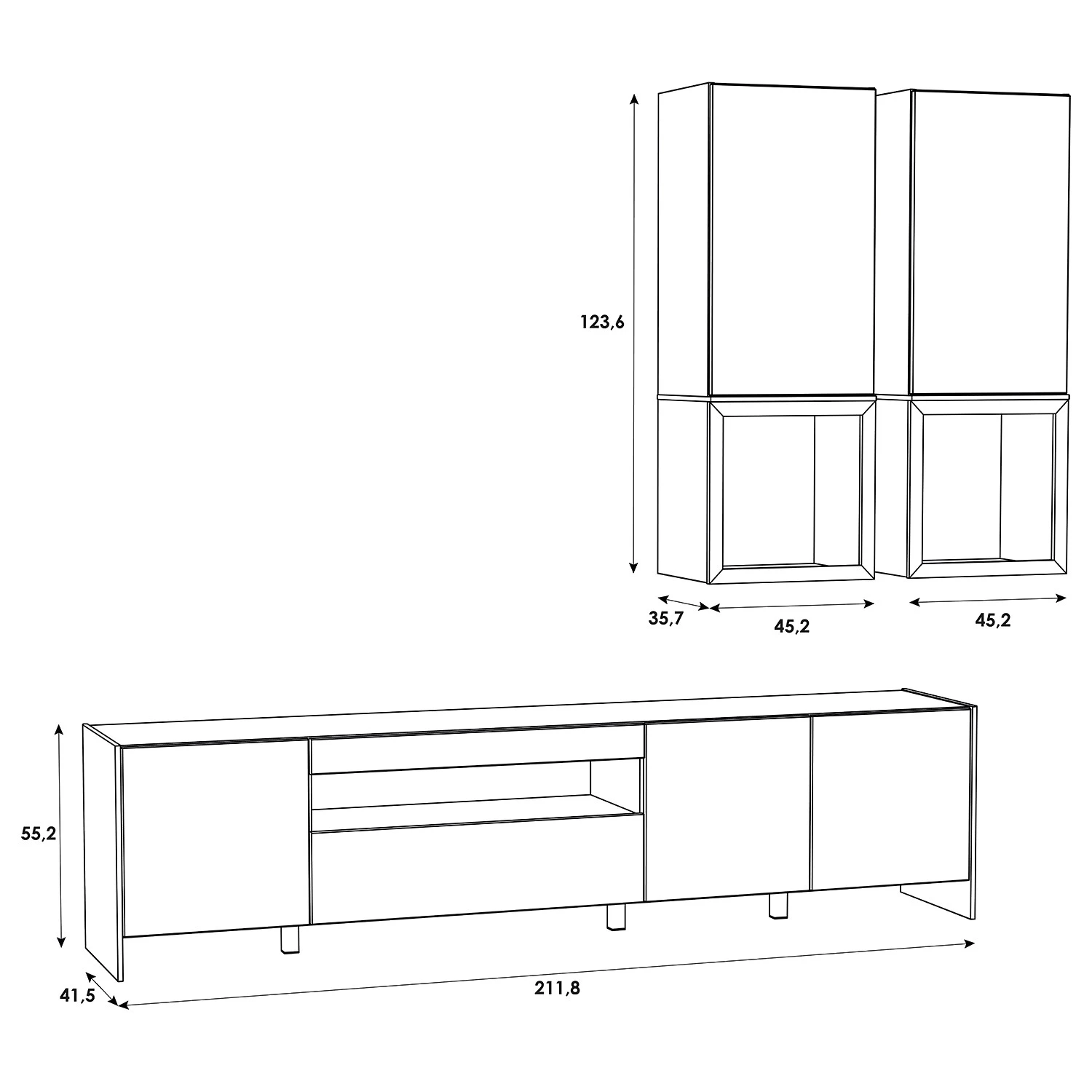 - Contenu de la livraison : Ensemble comprenant 1 meuble TV et 2 meubles hauts avec éclairage inclus, sans accessoires