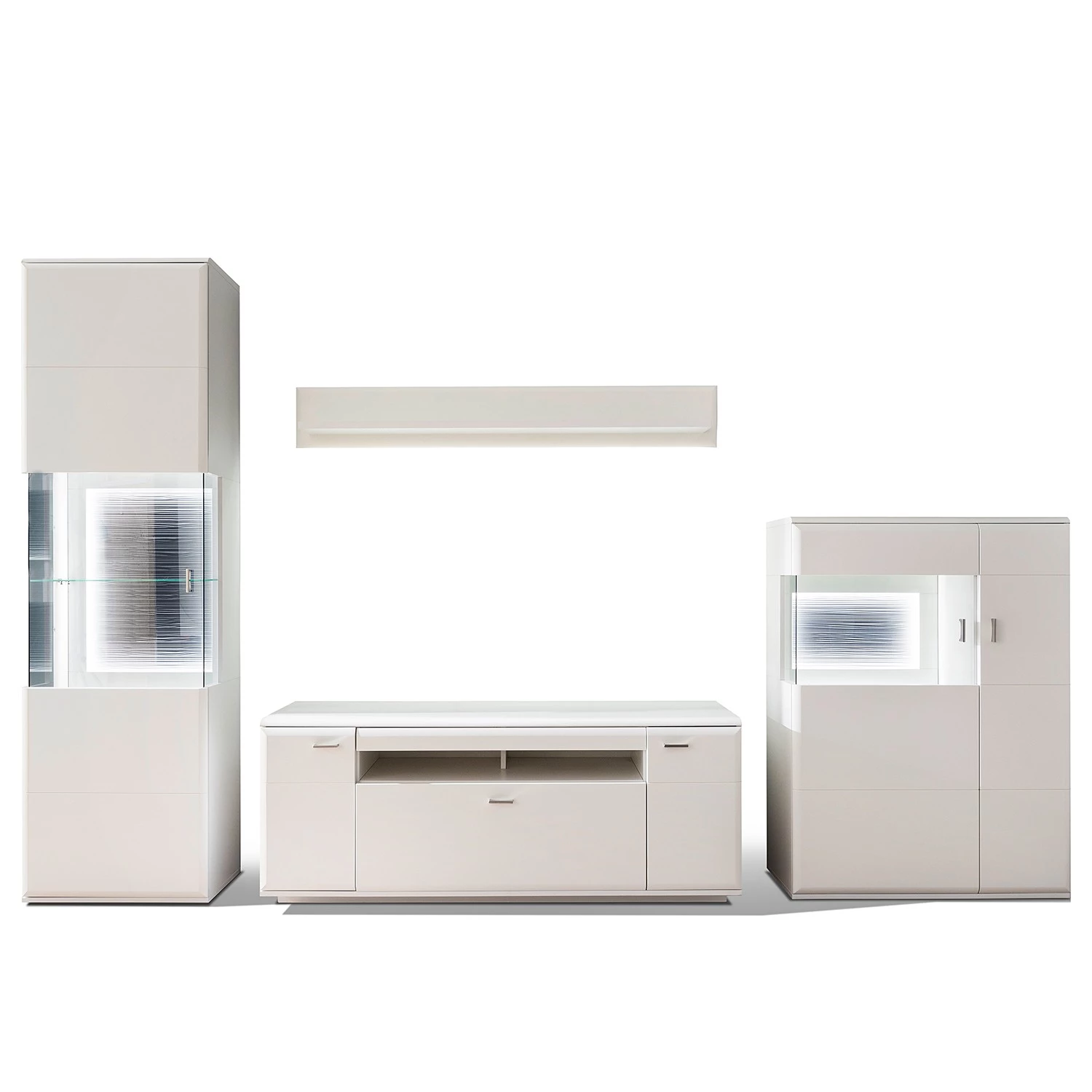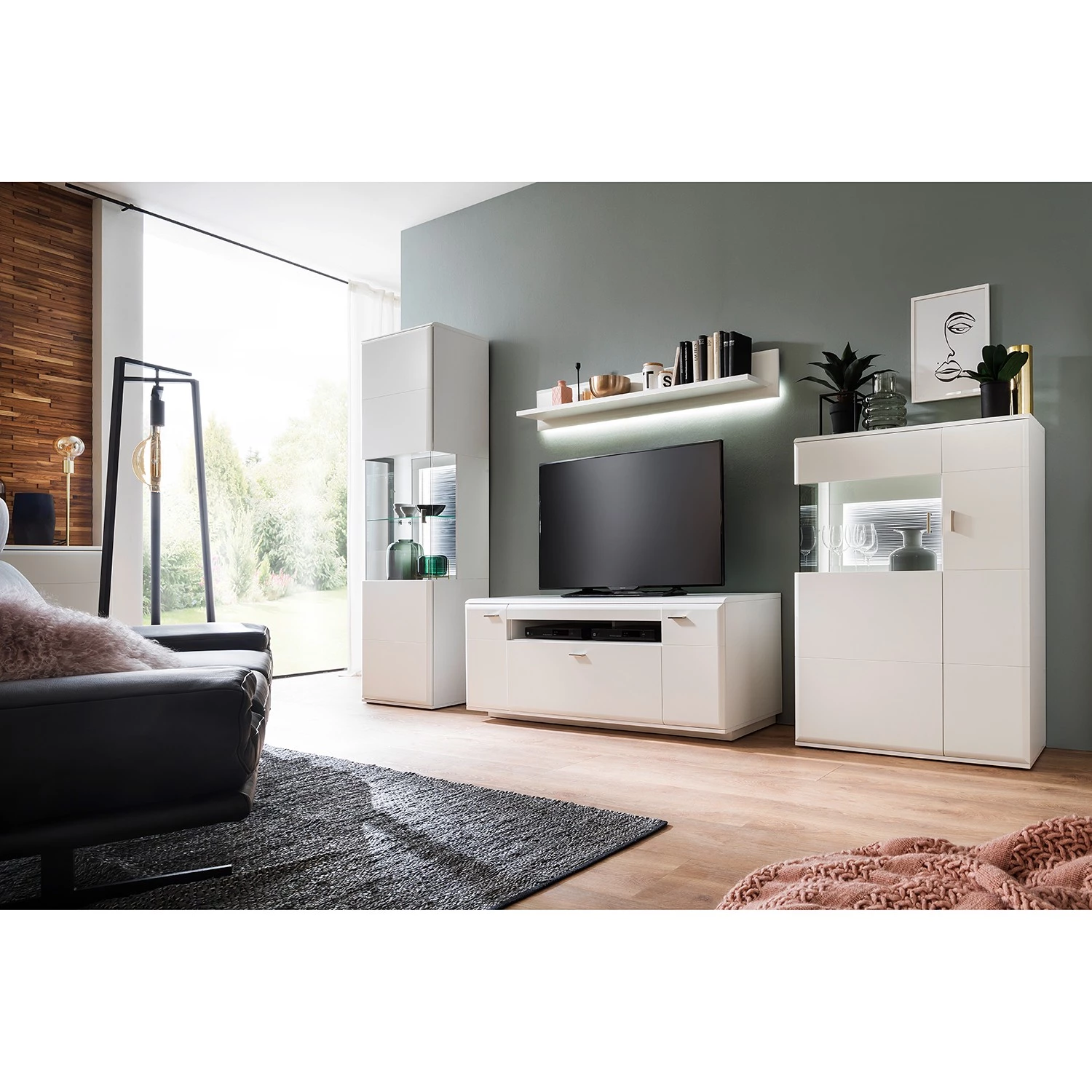 - Contenu de la livraison : Ensemble comprenant 1 vitrine, 1 tablette murale, 1 meuble TV et 1 buffet haut, sans éclairage ni accessoires