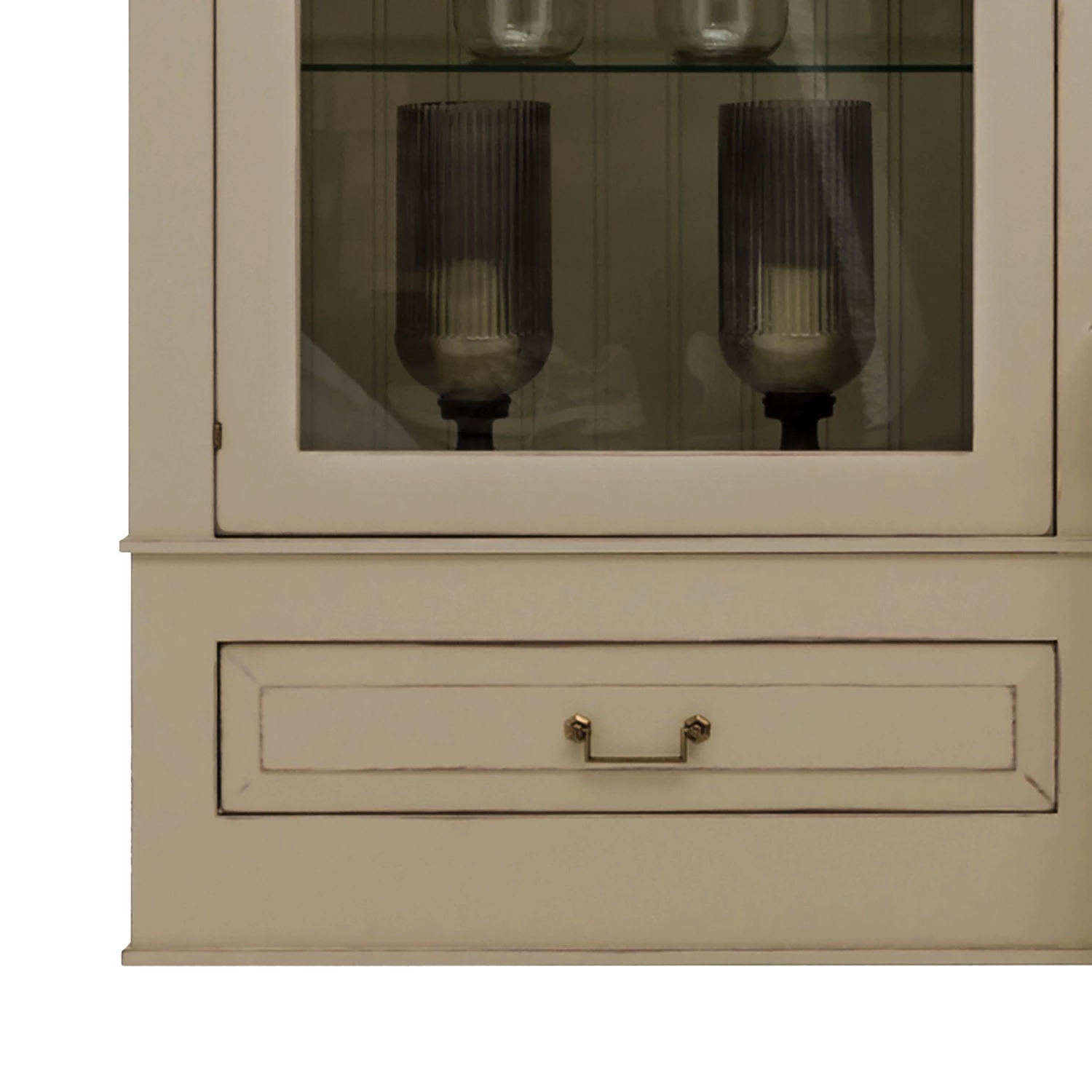 - 2 portes en bois et verre, chacune avec 3 tablettes en verre