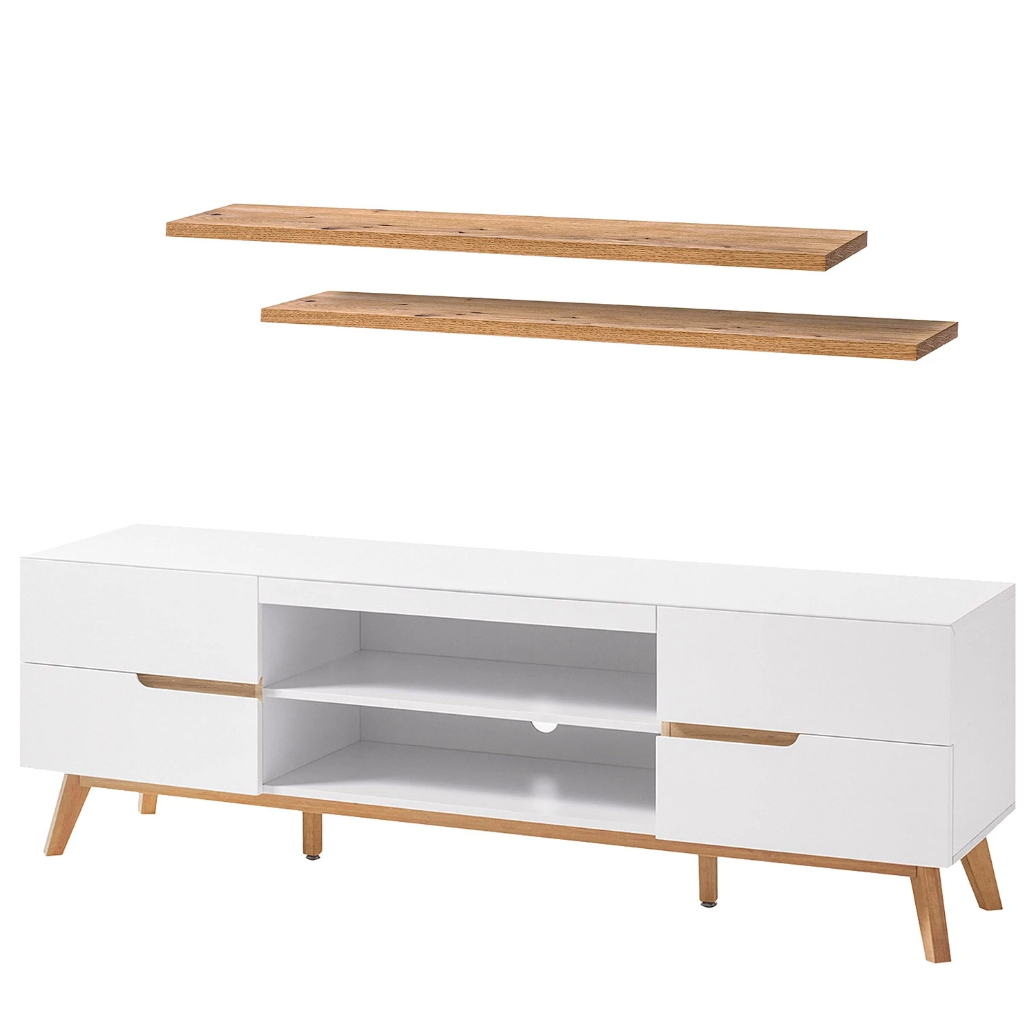 - Contenu de la livraison : 1 meuble TV et 2 tablettes murales, sans accessoires