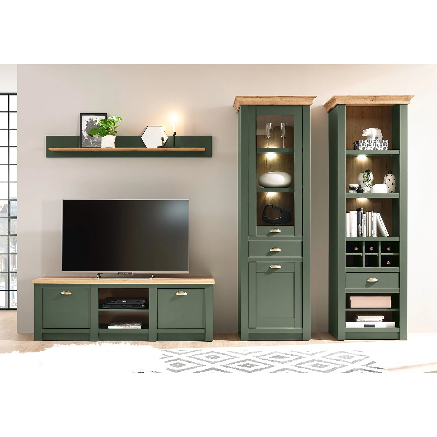 - Contenu de la livraison : Ensemble comprenant 1 vitrine, 1 tablette murale, 1 meuble TV et 1 étagère, sans éclairage ni accessoires