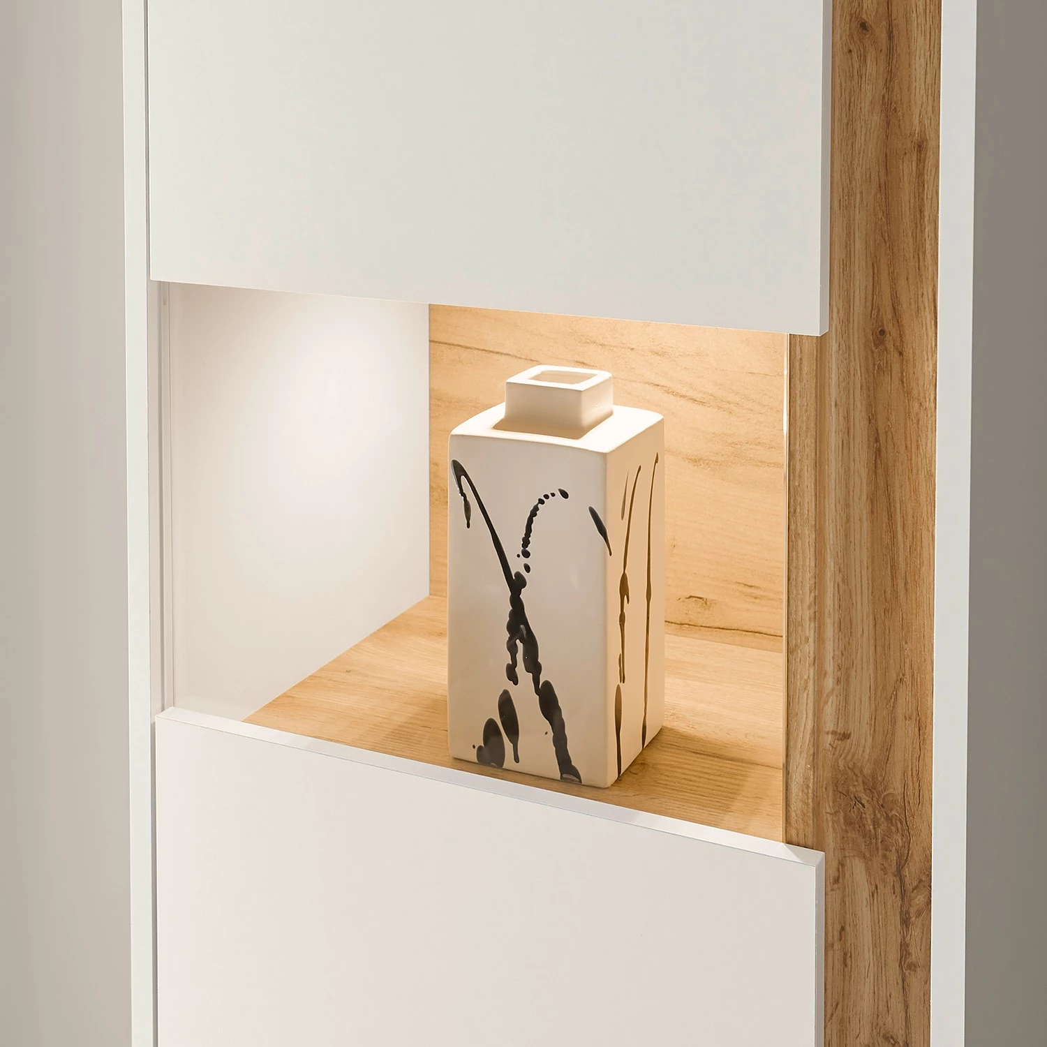 - Plateau supérieur et élément décoratif : imitation chêne de Wotan