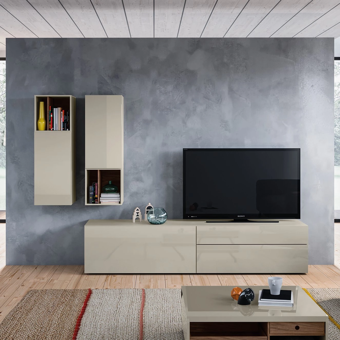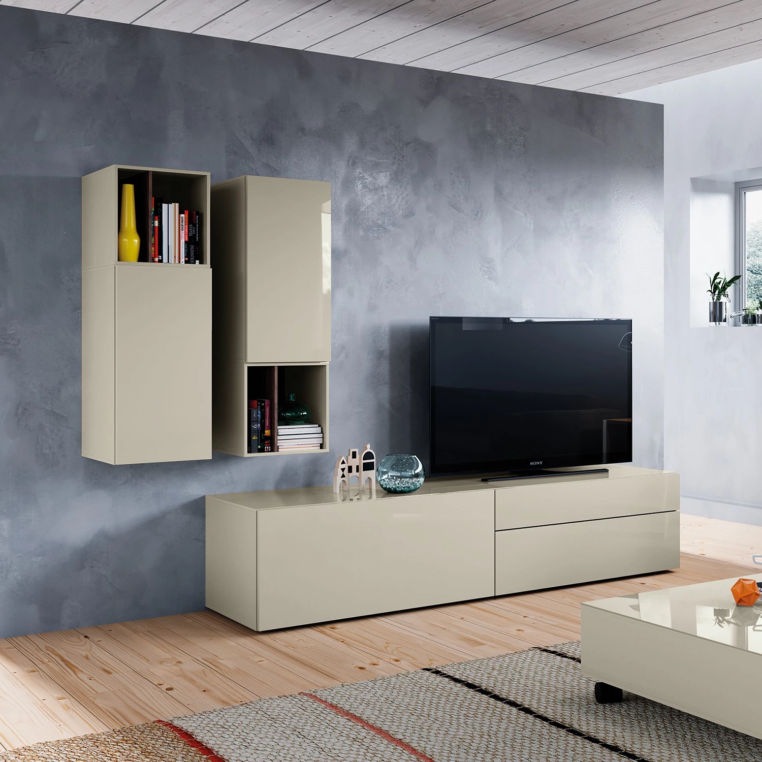 - Contenu de la livraison : Ensemble comprenant 1 meuble TV et 2 armoires murales