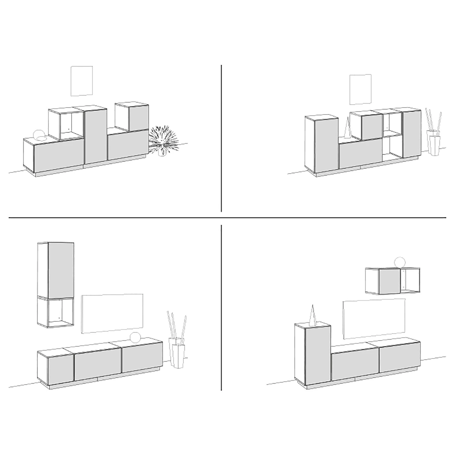 - Contenu de la livraison : 5 caissons avec socle et éléments de fixation, sans décoration