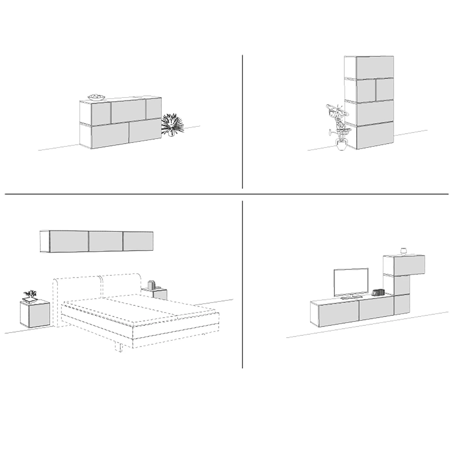 - Contenu de la livraison : 5 caissons avec éléments de fixation, sans décoration