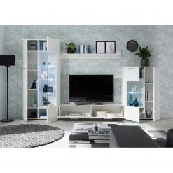 Loftscape Ensemble meubles TV Lonoke (5 éléments) – Avec éclairage – Blanc brillant
