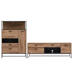 Red Living Ensemble meubles TV Hixson II (4 Ă©lĂ©m.) – Imitation chĂȘne de tonneau / Noir