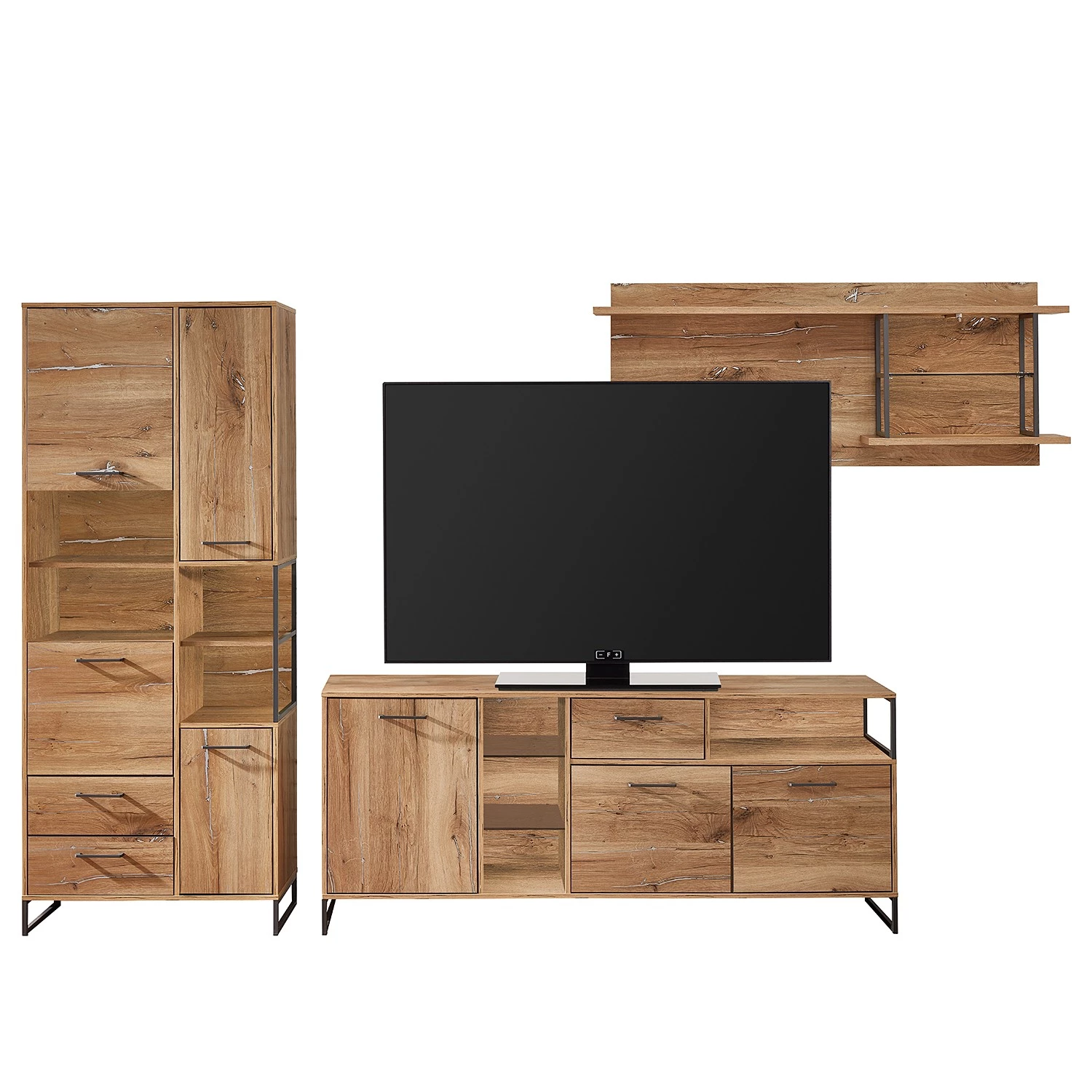 - Contenu de la livraison : Ensemble comprenant 1 vitrine, 1 tablette murale et 1 meuble TV, sans éclairage ni accessoires