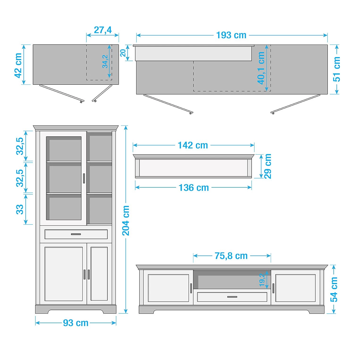 - Contenu de la livraison : Ensemble comprenant 1 vitrine, 1 meuble TV et 1 étagère murale