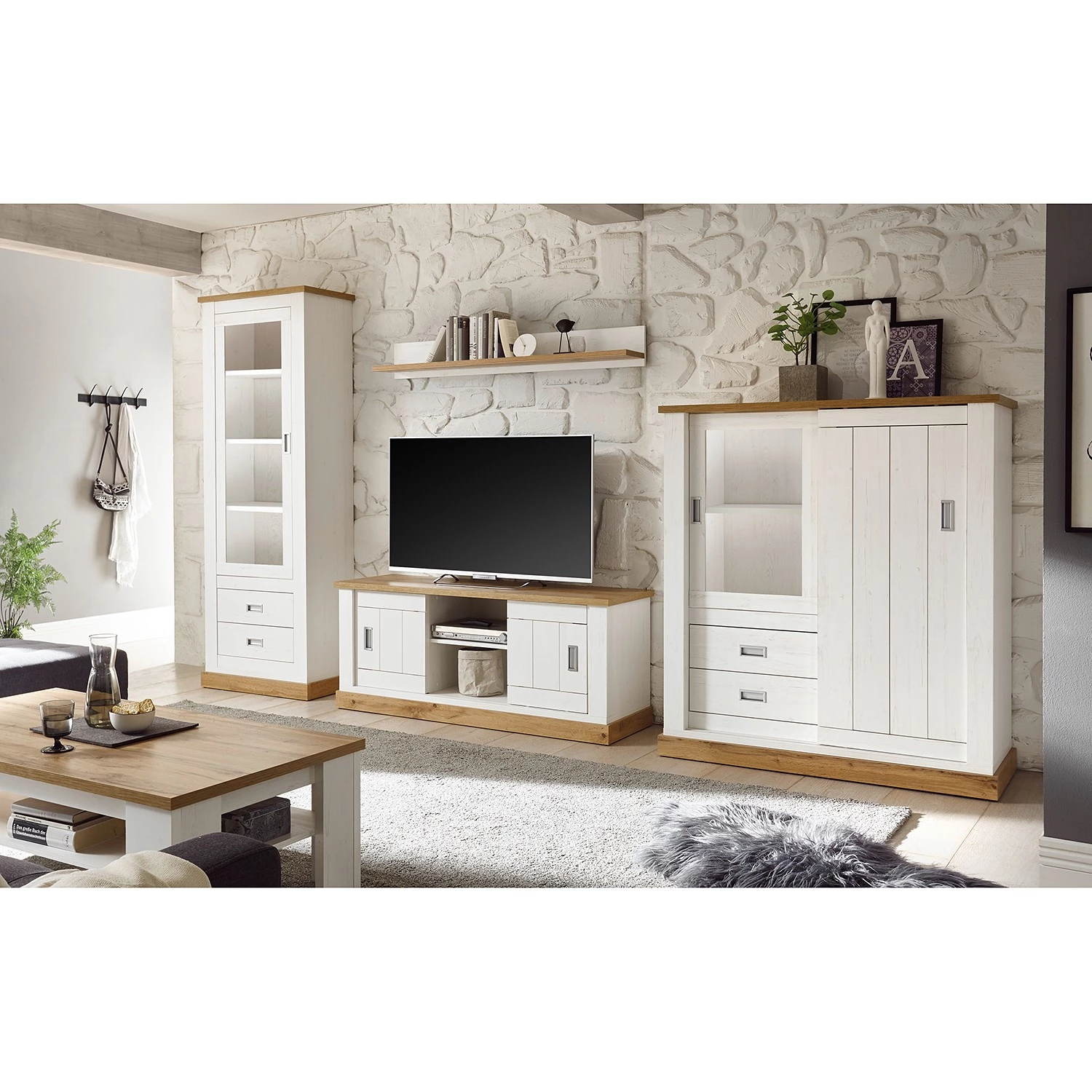 - Contenu de la livraison : Ensemble comprenant 1 buffet haut, 1 vitrine, 1 tablette murale et 1 meuble TV, sans éclairage ni accessoires