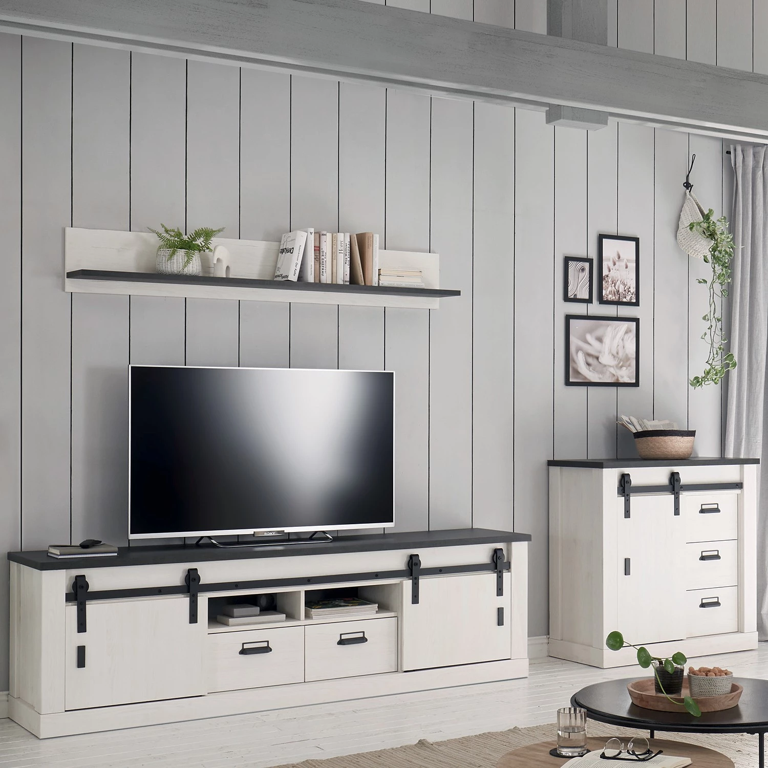- Contenu de la livraison : Ensemble comprenant 1 tablette murale, 1 meuble TV et 1 commode, sans éclairage ni accessoires