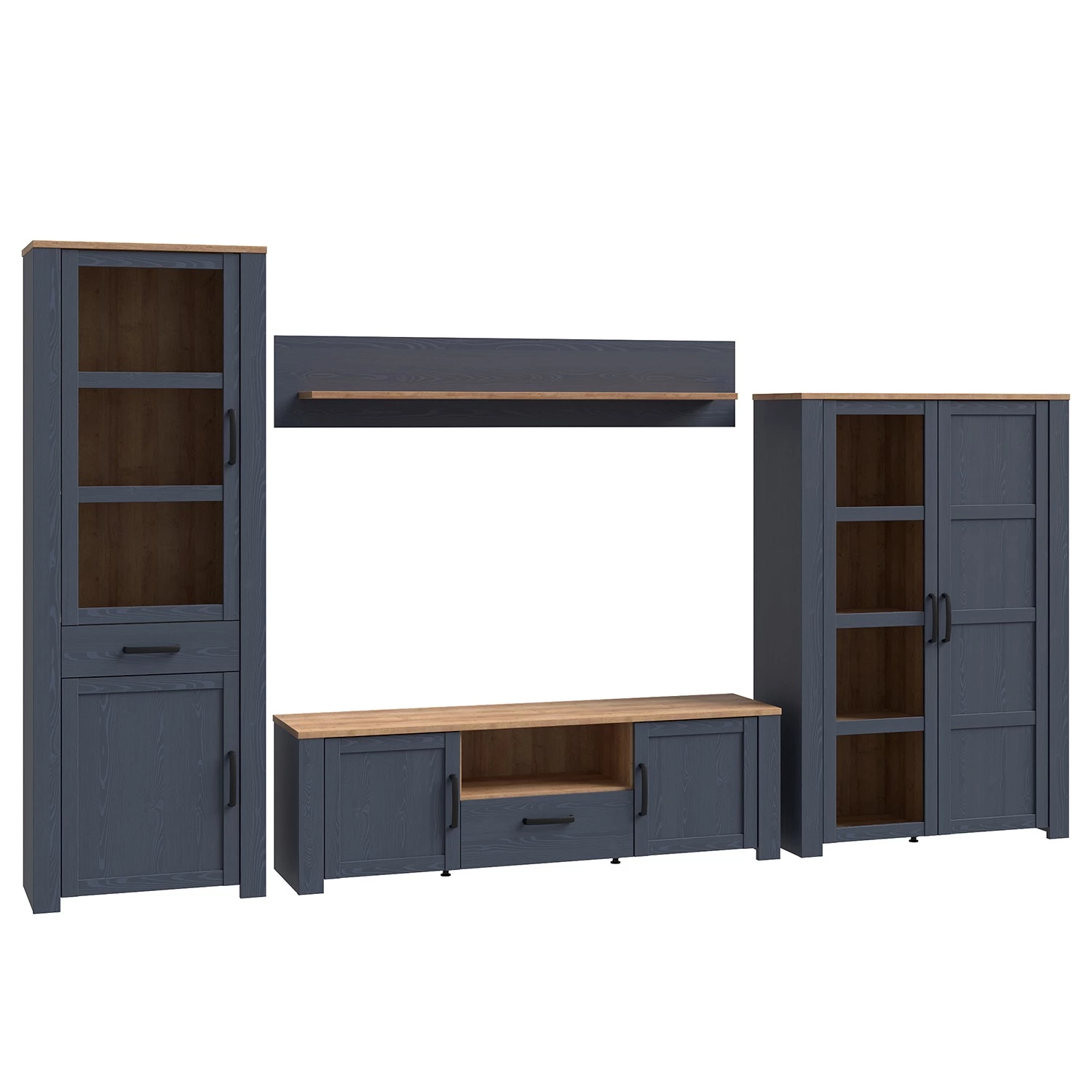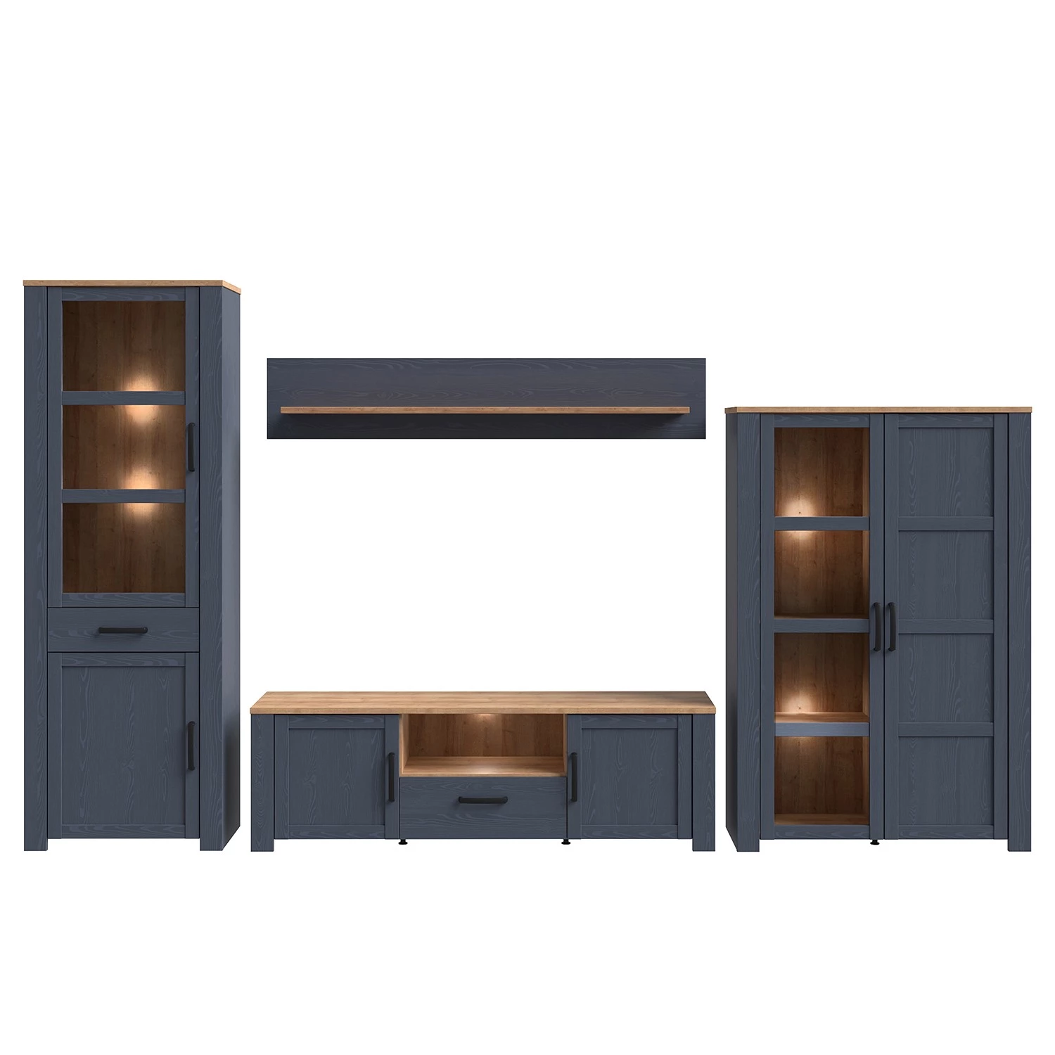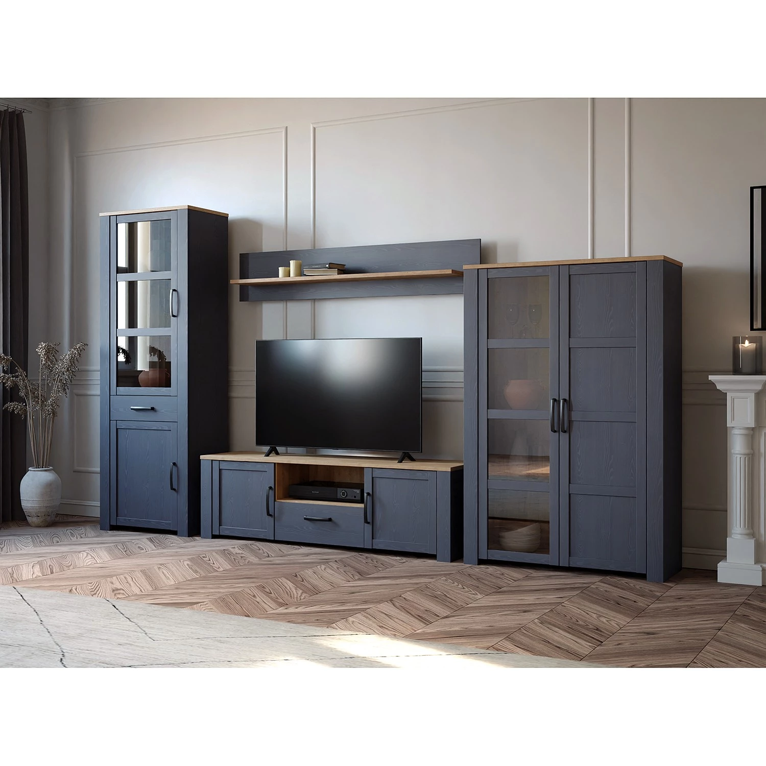 - Contenu de la livraison : Ensemble comprenant 1 vitrine, 1 étagère murale, 1 meuble TV et 1 buffet haut, sans accessoires