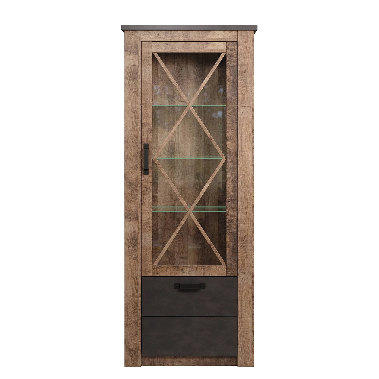 - Contenu de la livraison : Ensemble comprenant 1 vitrine, 1 tablette murale, 1 meuble TV et 1 buffet haut, sans éclairage ni accessoires